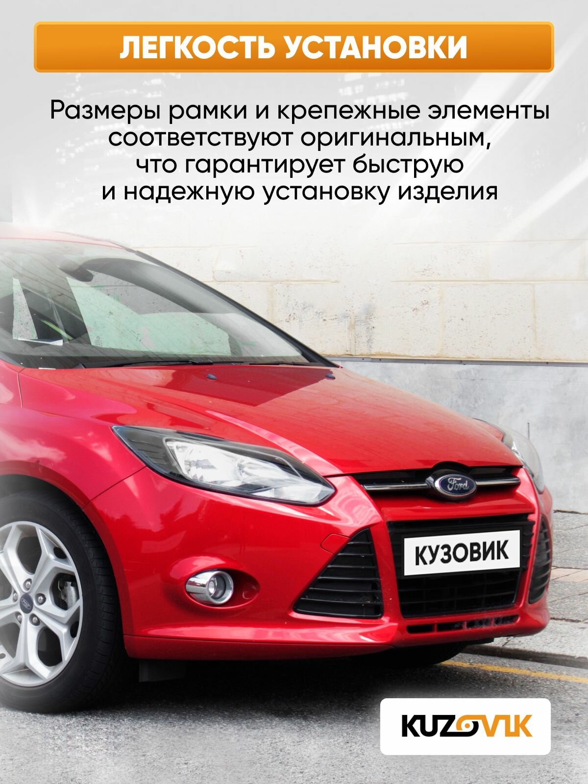 | Подробная комплектация | Рамка противотуманной фары левая для Форд Фокус 3 Ford Focus 3 (2011-2015) хром, накладка, решетка бампера, рамка птф, новая качественный пластик. |