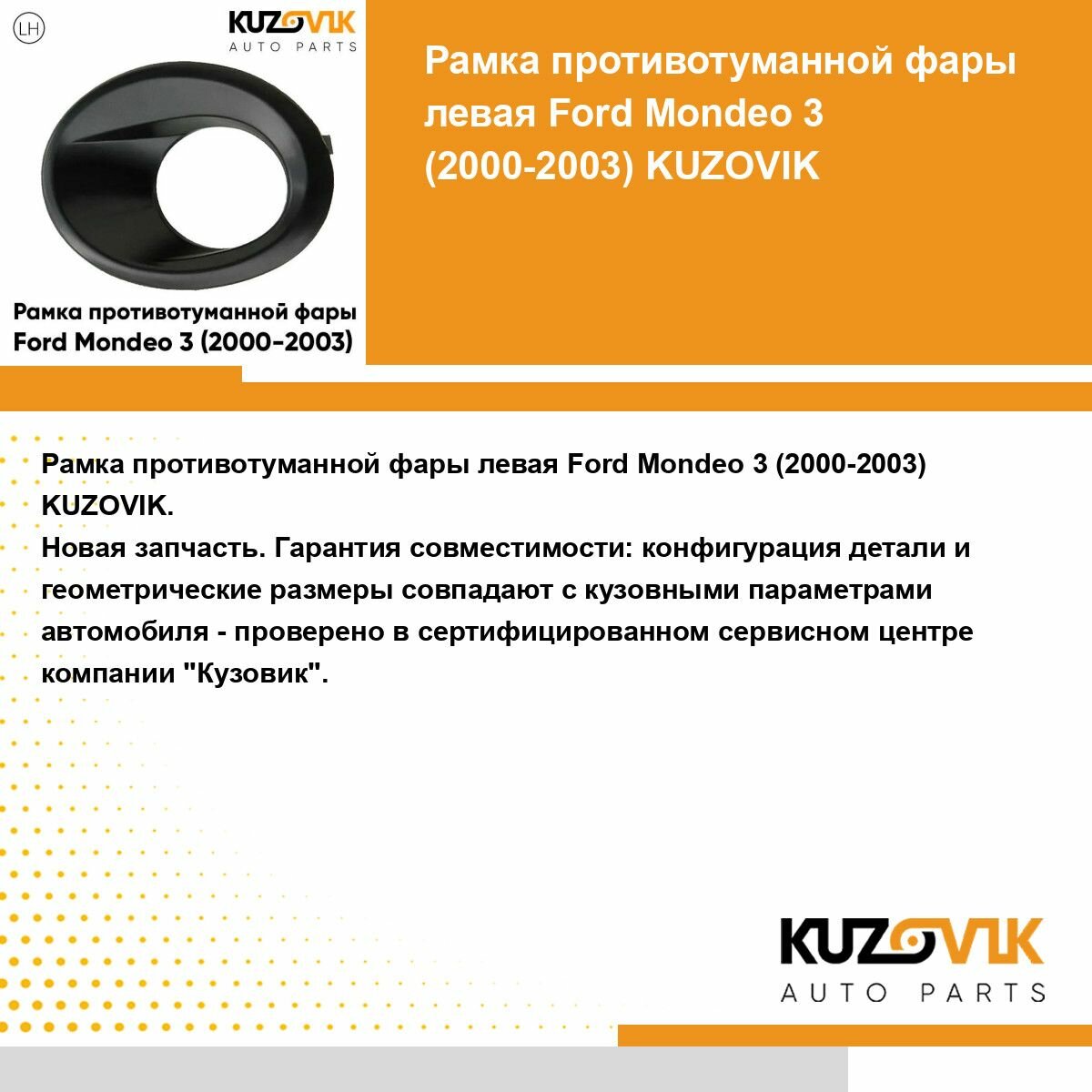 | Подробная комплектация | Рамка противотуманной фары для Форд Мондео Ford Mondeo 3 (2000-2003) дорестайлинг левая черная, накладка бампера, птф, туманка |