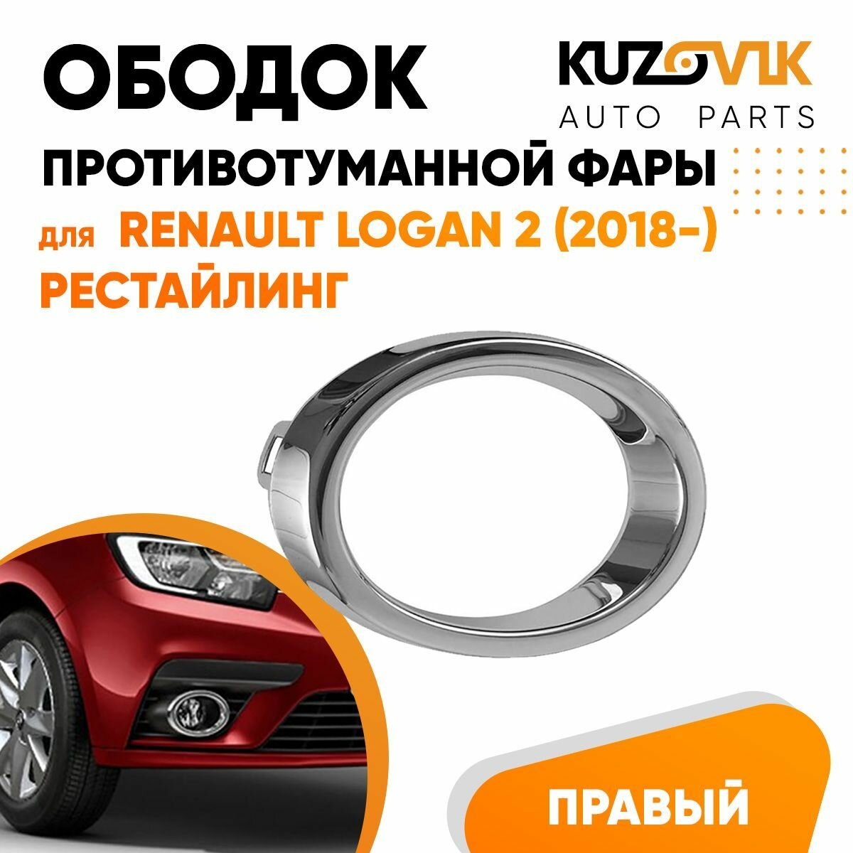 Купить Ободок, молдинг противотуманной фары для Рено Логан Renault Logan 2 (2018-) рестайлинг правая накладка, хромированная решётка, птф, туманка