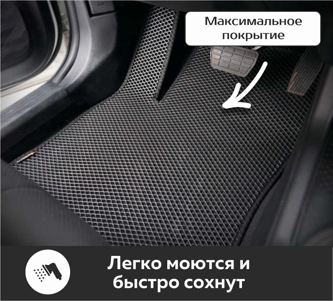 Коврики EVA для BAIC (BEIJING) U5 Plus (2021-) от CarStar. Комплект в салон. Чёрные с чёрным кантом. интересное: