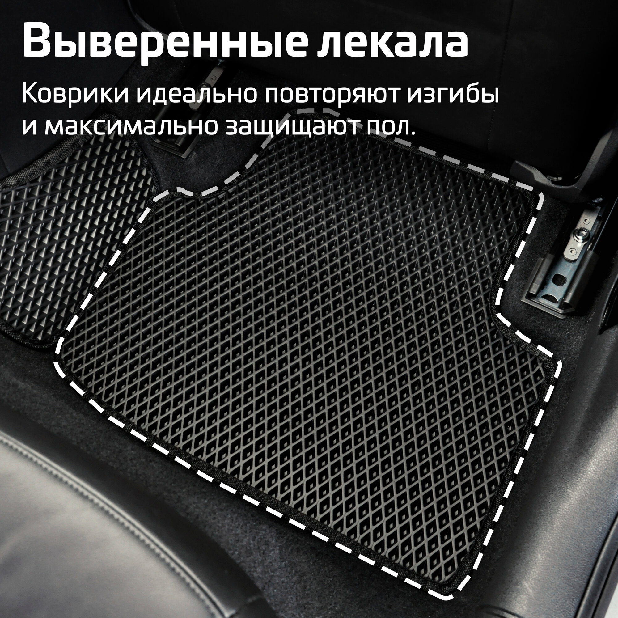 Автомобильные коврики EVA для Chery Tiggo 4 рестайл 2 (2024->), чёрные с чёрным кантом, ячейка - ромб интересное: