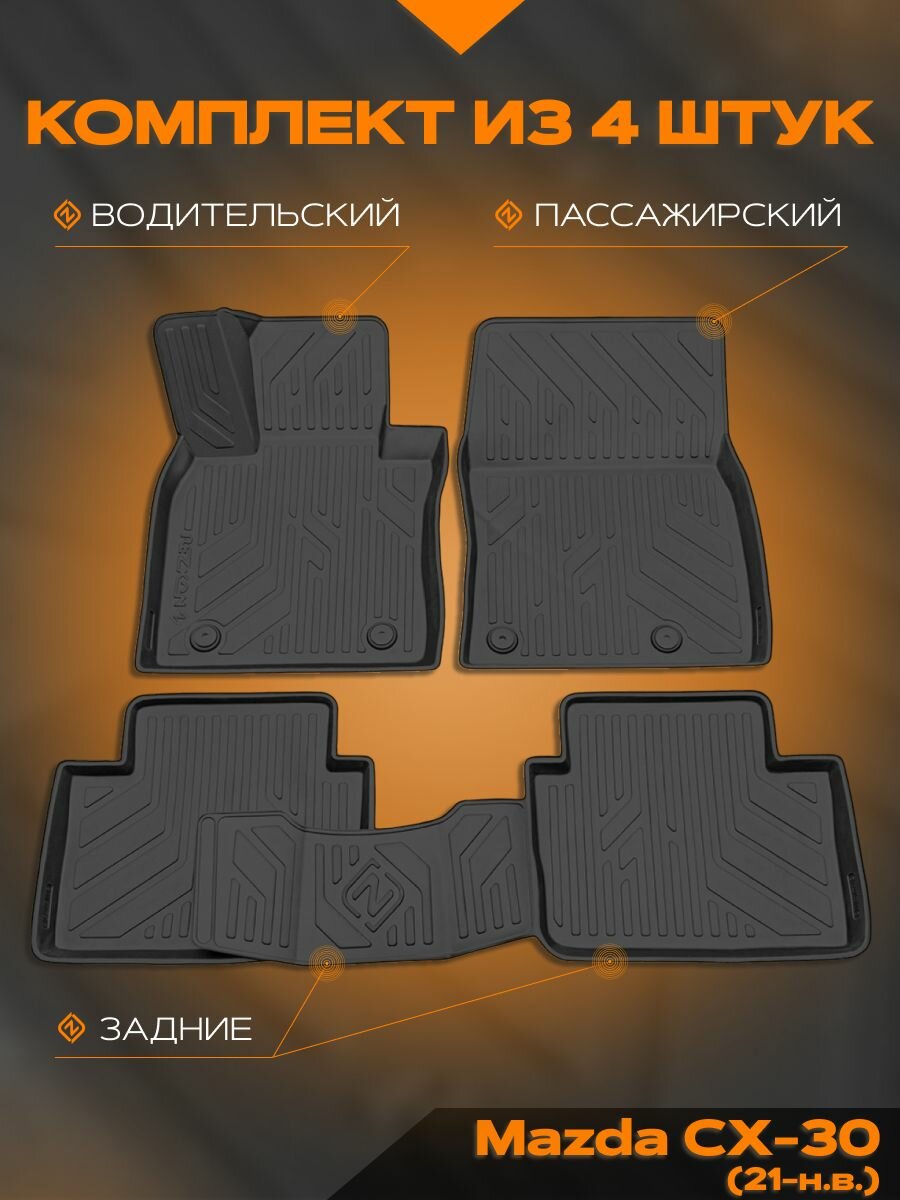 Купить Коврик салонный полиуретановый (черный) для Mazda CX-30 (21-Н. В.) (Борт 4см)