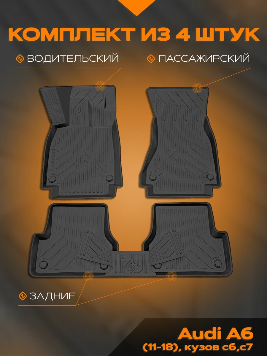 Купить Коврик салонный полиуретановый (черный) для Audi A6 (11-18) кузов с6, с7 (Борт 4см)