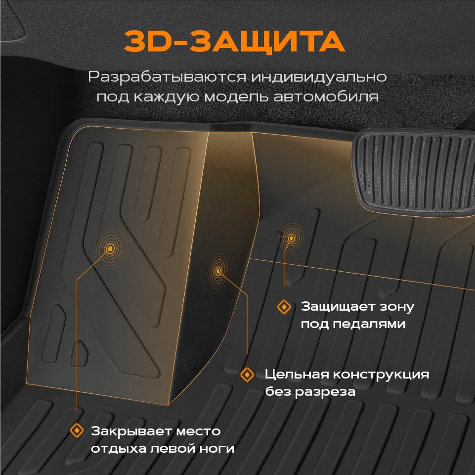 Коврик салонный полиуретановый (черный) для Geely Monjaro (22-Н. В.) (Борт 4см)