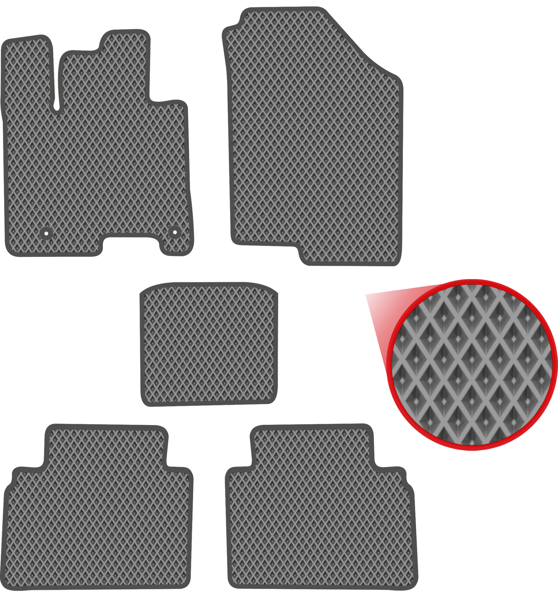 Автомобильные коврики EVA для Hyundai Tucson IV (2020-н/в), серые с серым кантом, ячейка - ромб интересное:
