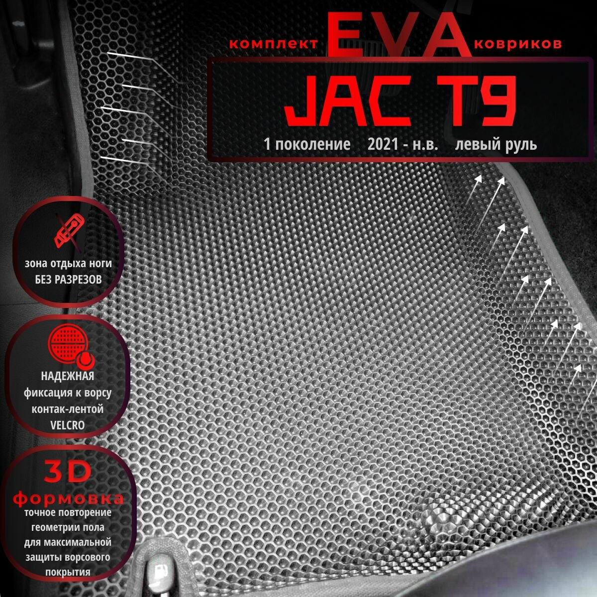Автомобильные коврики Eva с 3D бортиками для Jac T9 1 поколение (2021-н. в.) Лев. р./черные с черным кантом/EvaLuxeNSK