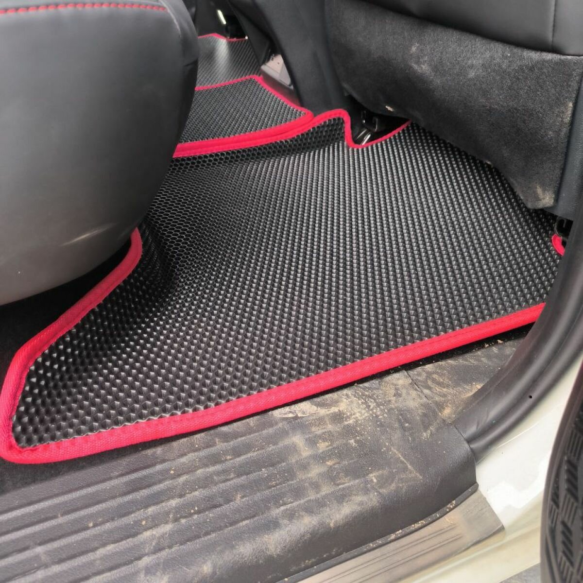 Автомобильные коврики Eva с 3D бортиками для Jac T9 1 поколение (2021-н. в.) Лев. р./черные с красным кантом/EvaLuxeNSK