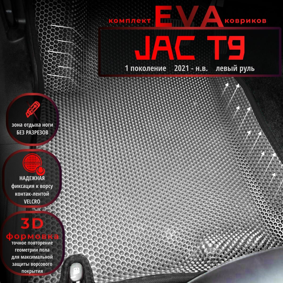 Купить Автомобильные коврики Eva с 3D бортиками для Jac T9 1 поколение (2021-н. в.) Лев. р./серые с черным кантом/EvaLuxeNSK