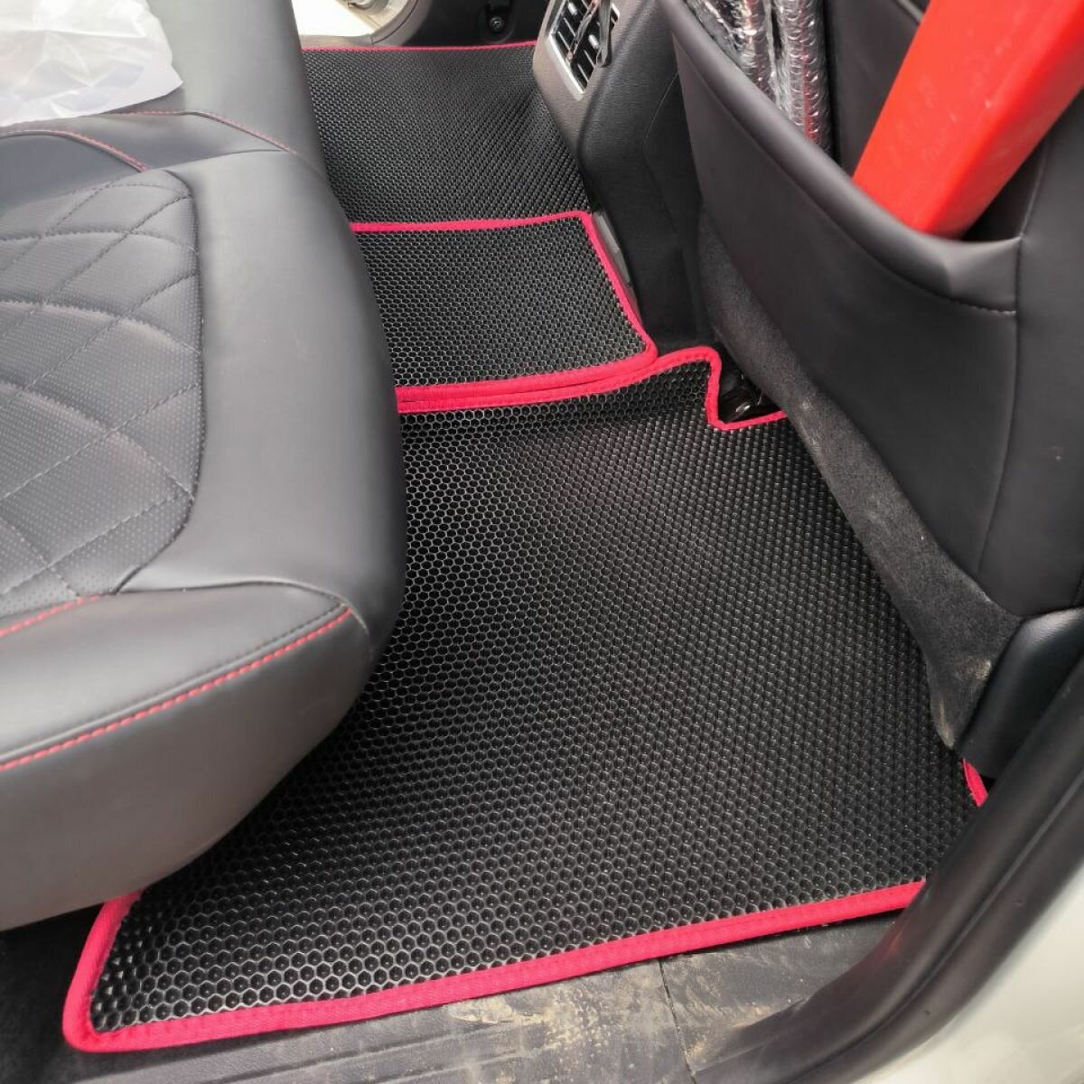 Автомобильные коврики Eva с 3D бортиками для Jac T9 1 поколение (2021-н. в.) Лев. р./черные с красным кантом/EvaLuxeNSK