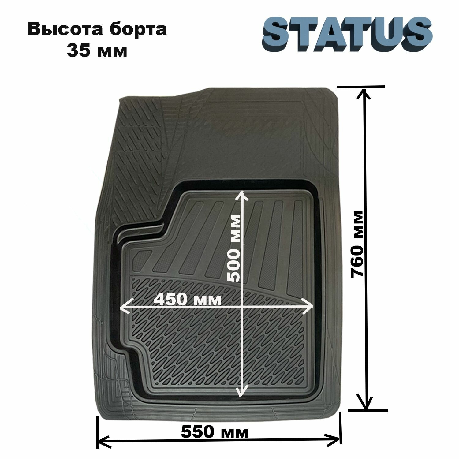 Передние коврики в салон универсальные STATUS (760мм / 550мм), резина, 2 шт.
