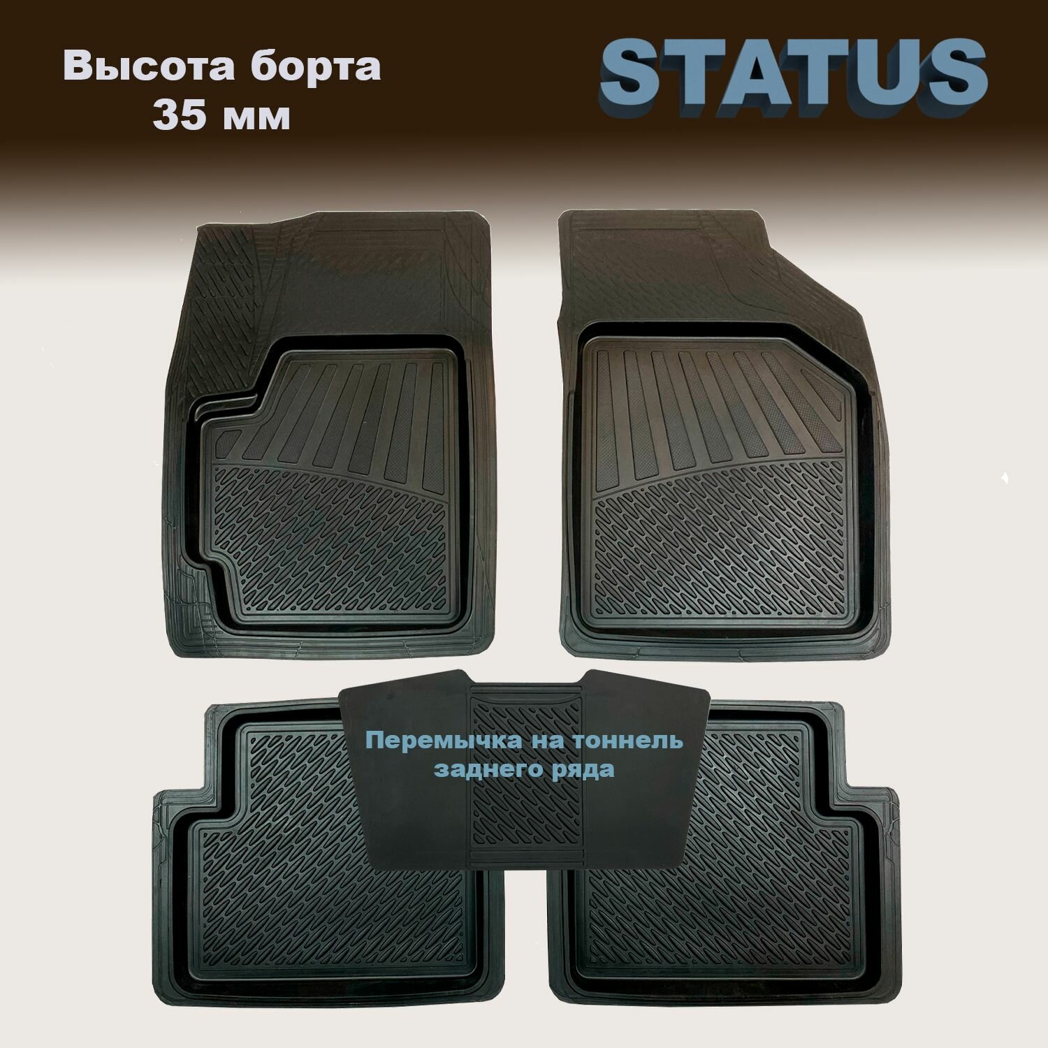 Купить Коврики в салон универсальные STATUS (760 мм/550 мм) с перемычкой на тоннель заднего ряда, резина, 5 шт