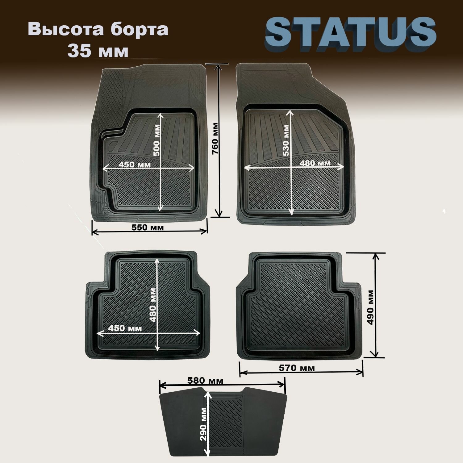 Передние коврики в салон универсальные STATUS (760мм / 550мм), резина, 2 шт.