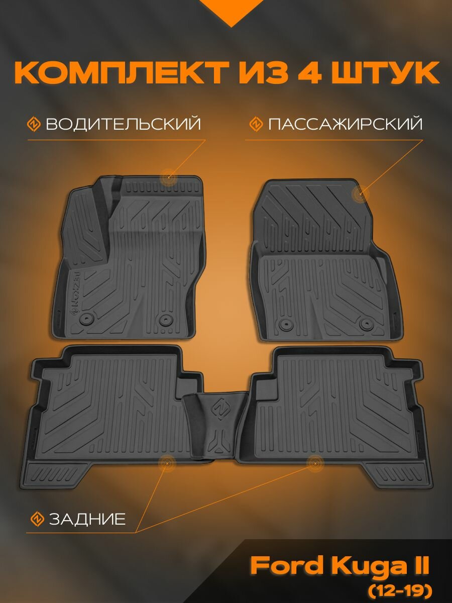 Купить Коврик салонный полиуретановый (черный) для Ford Kuga II (12-19) (Борт 4см)