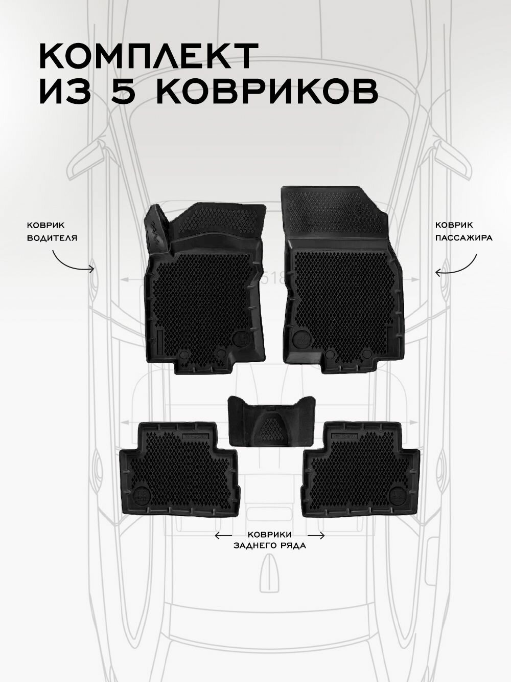 Коврики Джетур Жетоур Дашинг Дэшинг Jetour Dashing 2 WD (2022-) Premium Delform EVA ячейками и бортиками