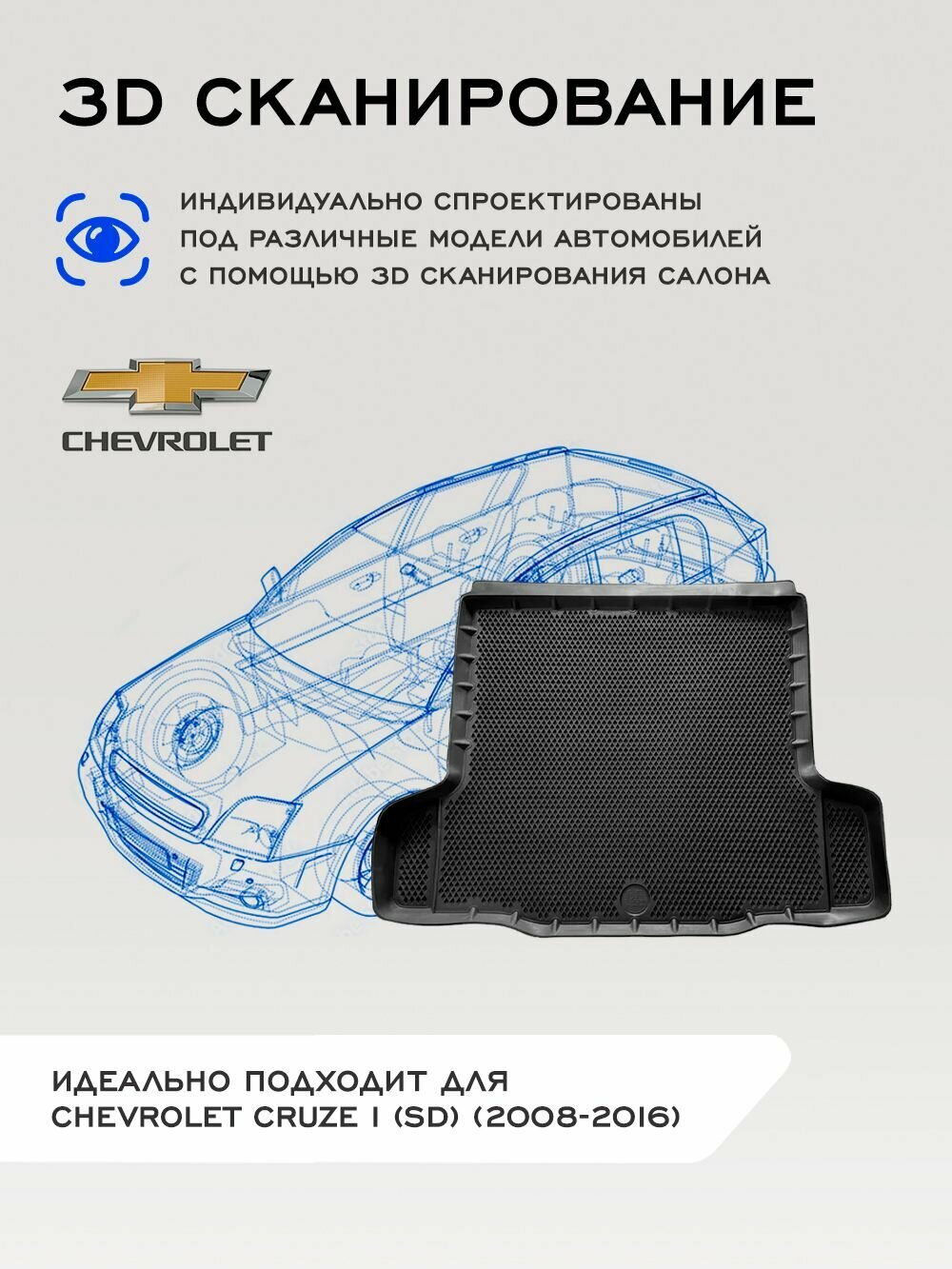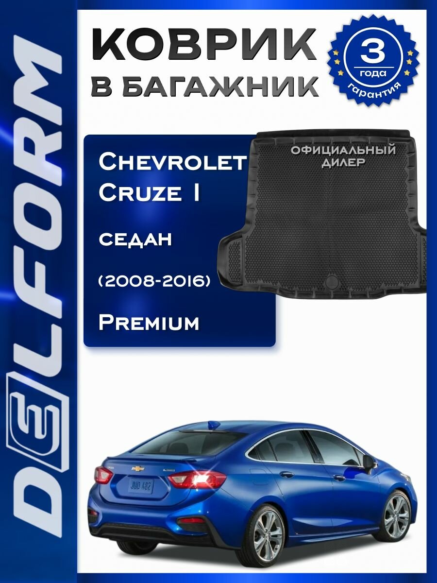Купить Коврик в багажник Шевроле Круз 1 Седан / Chevrolet Cruze I (SD) (2008-2016) Premium DelForm