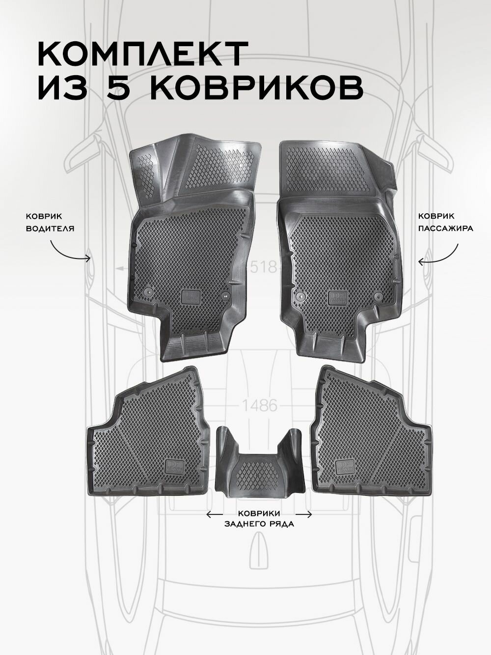 Коврики Джетур Жетоур Дашинг Дэшинг Jetour Dashing 2 WD (2022-) Premium Delform EVA ячейками и бортиками