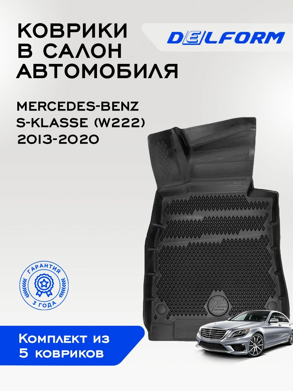 Купить Коврики в Mercedes-Benz S-klasse (W222) (2013-2020) Premium, Мерседес Бенц с бортами и ячейками Delform
