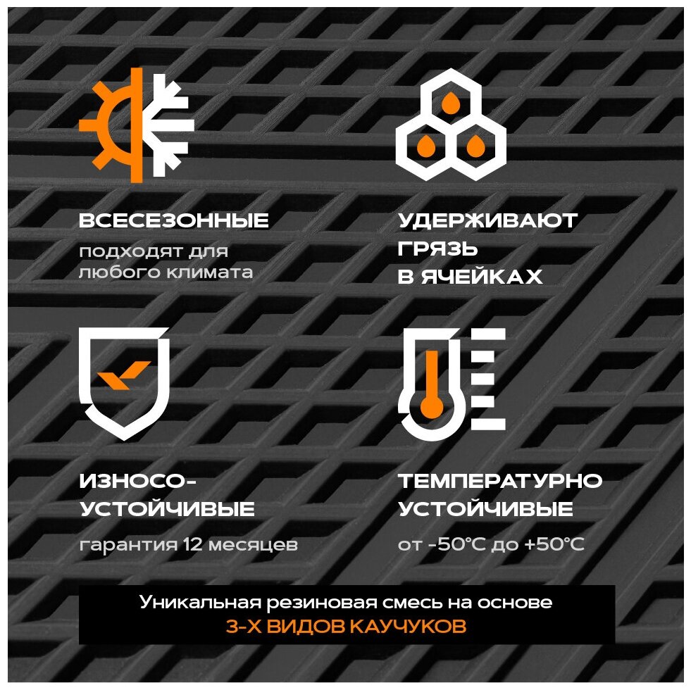 Коврик салонный резиновый (черный) для LADA Granta Ячеистый Ромб (борт 4 см), интересное: