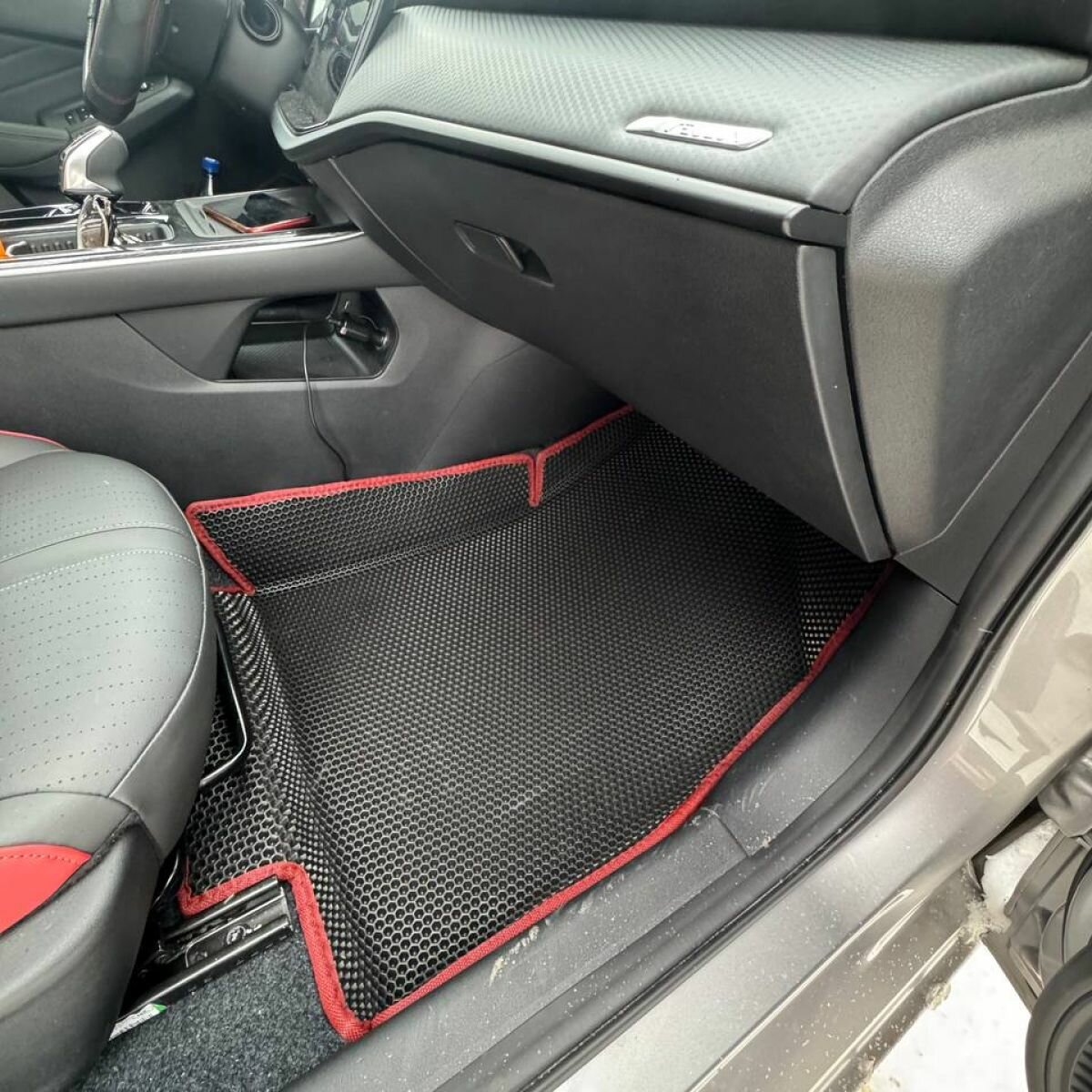Автомобильные коврики Eva с 3D бортиками для Dongfeng Shine Max I (2021-.) 2WD, Лев. р./полное покрытие/серые с красным кантом/EvaLuxeNSK