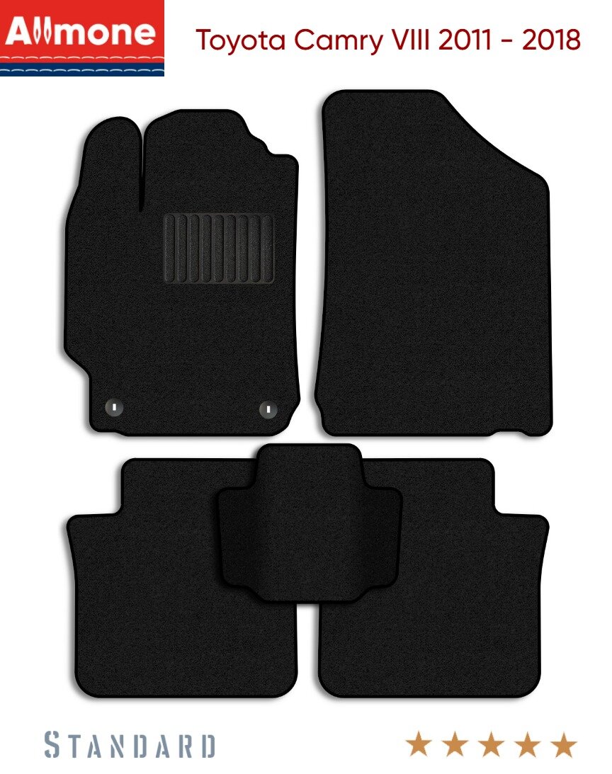 Ворсовые автомобильные коврики в салон "Стандарт" для Toyota Camry 8 (XV55, XV50) 2011 - 2018, черные, 5шт. / Тойота Камри 8 интересное: