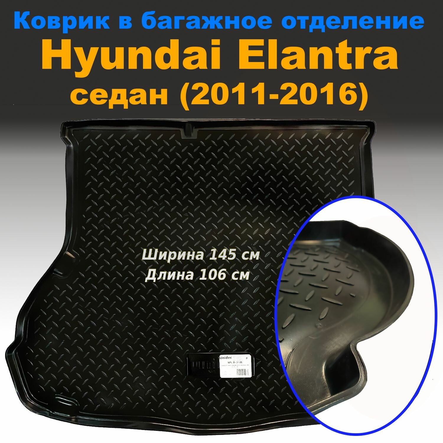 Купить Коврик в багажник Hyundai Elantra MD SD седан (2011-2016) (NPL) пластик