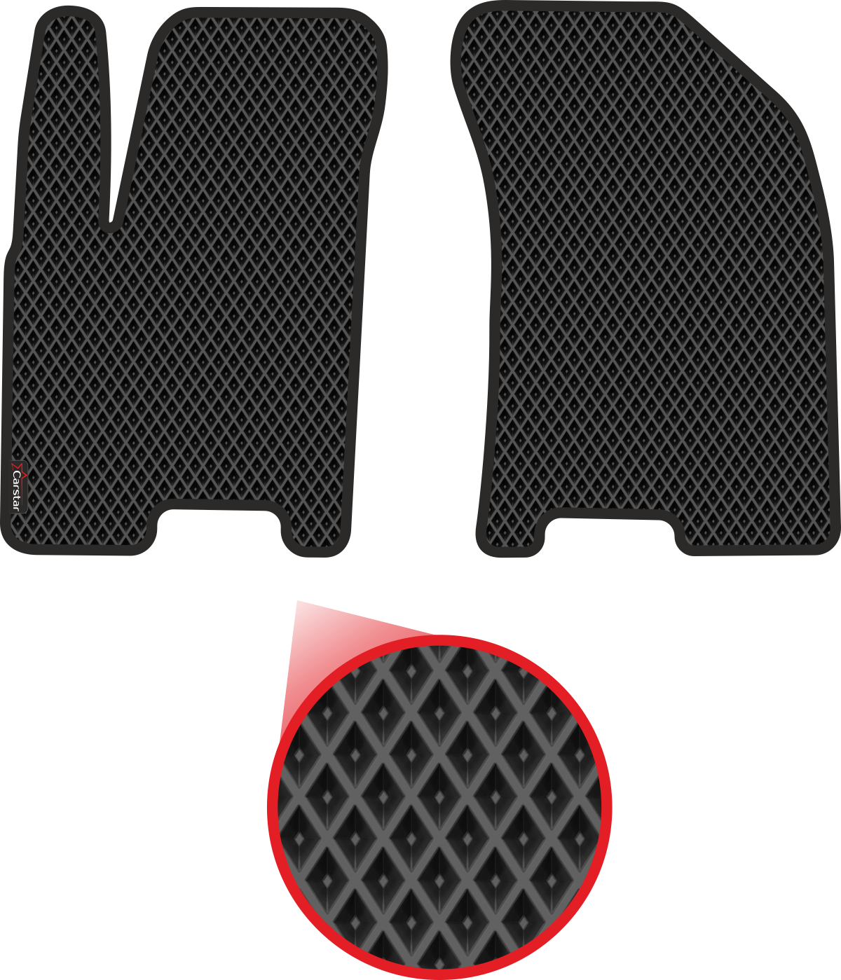 Передние коврики EVA для Chevrolet Aveo I (2003-2012), чёрные с чёрным кантом, ячейка - ромб интересное: