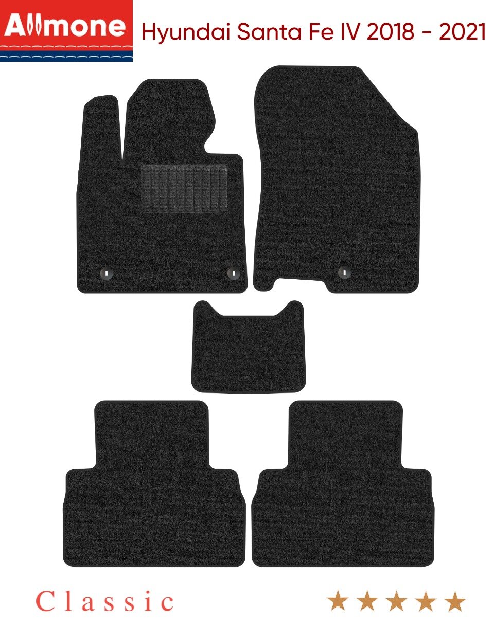 Автоковрики Allmone "Классик" для Hyundai Santa Fe 4 (TM) 2018 - 2021, темно-серые, 5шт. / Хендай Санта Фе 4 / текстильные / в салон интересное: