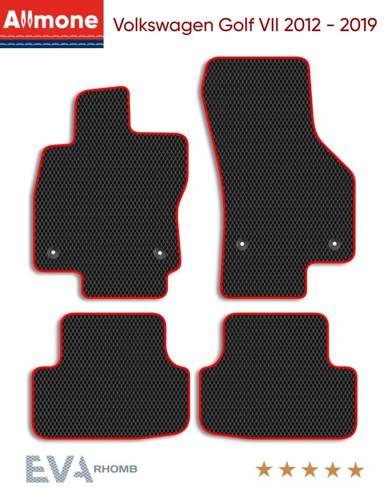 Купить Коврики автомобильные в салон ЭВА Allmone для Volkswagen Golf 7 (Mk7) 2012 - 2019, черные c красным кантом, 4шт. / Фольксваген Гольф 7