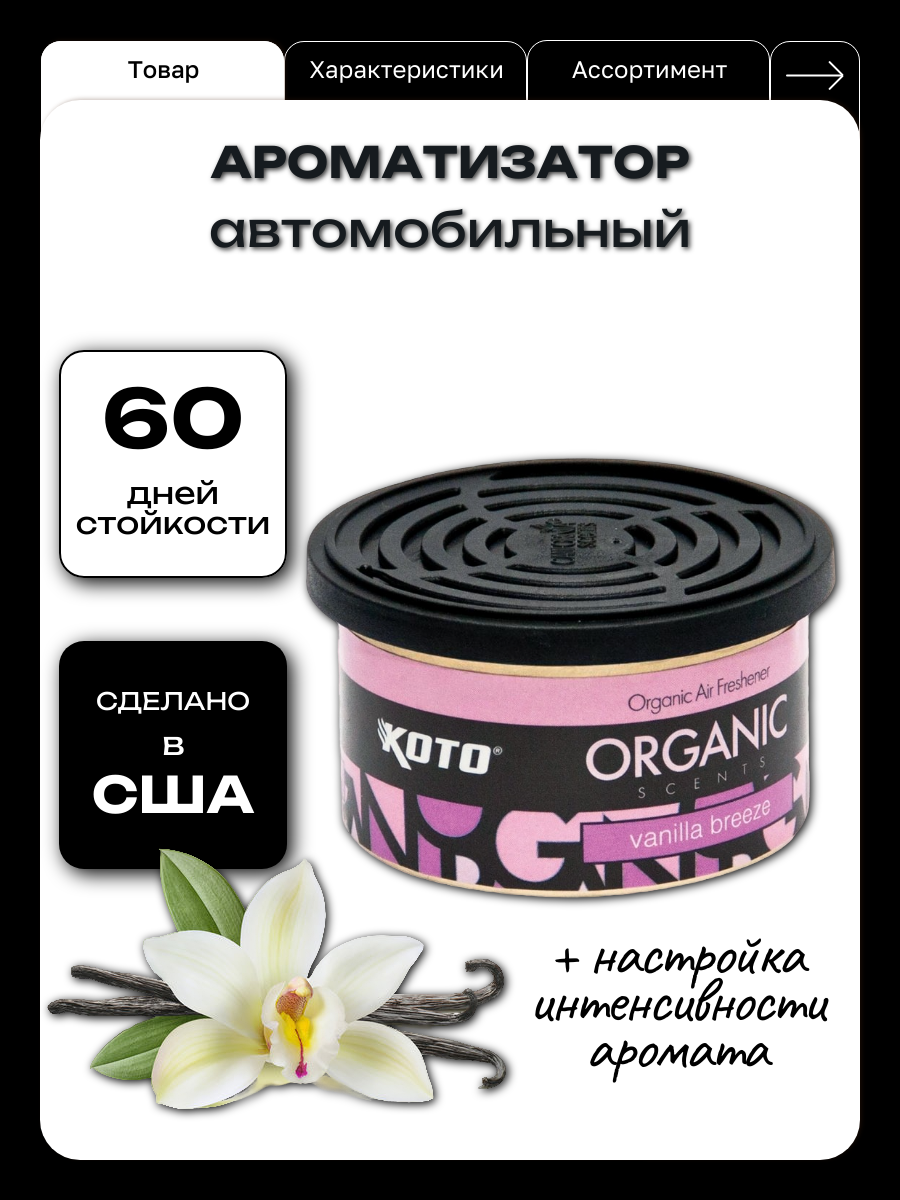 СохранитьАроматизатор для автомобиля KOTO "Vanilla breeze", регулировка интенсивности запаха, 35 мл интересное: