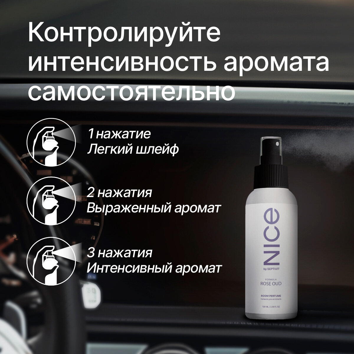 Купить Освежитель воздуха / Ароматизатор для авто / Парфюм для авто NICE by Septivit "Formula 03 Rose Oud" 100мл