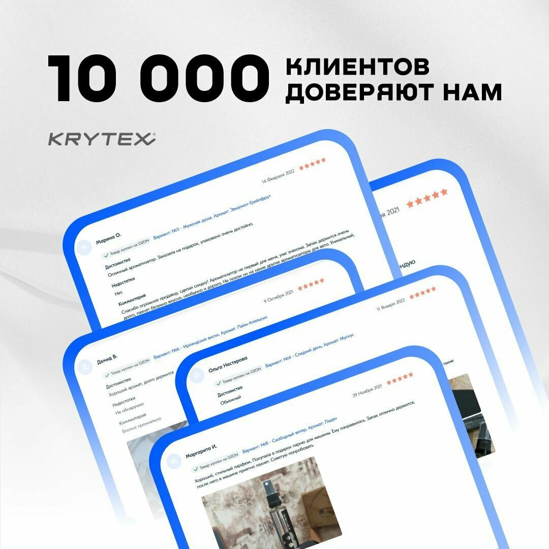Ниже Вы можете прочитать отзывы на Автопарфюм для автомобиля и дома пахучка в машину подарок водителю KRYTEX Parfume Pro №10, ознакомится с подробными характеристиками, посмотреть интересные обзоры и фотографии на Автопарфюм для автомобиля и дома пахучка в машину подарок водителю KRYTEX Parfume Pro №10.