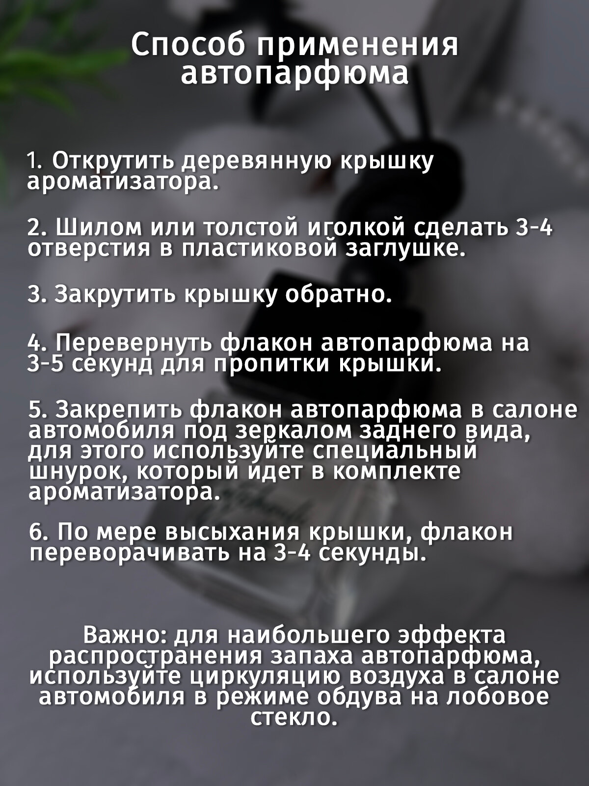 | Дополнительная информация | Комплектация: Ароматизатор в индивидуальной упаковке; Инструкция; Подарочная коробочка. |