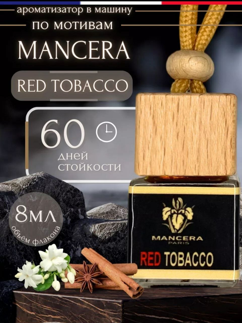 | Комплектация | стеклянный флакон , деревянная крышка и автопарфюм 8мл |