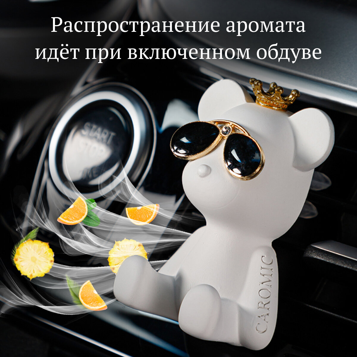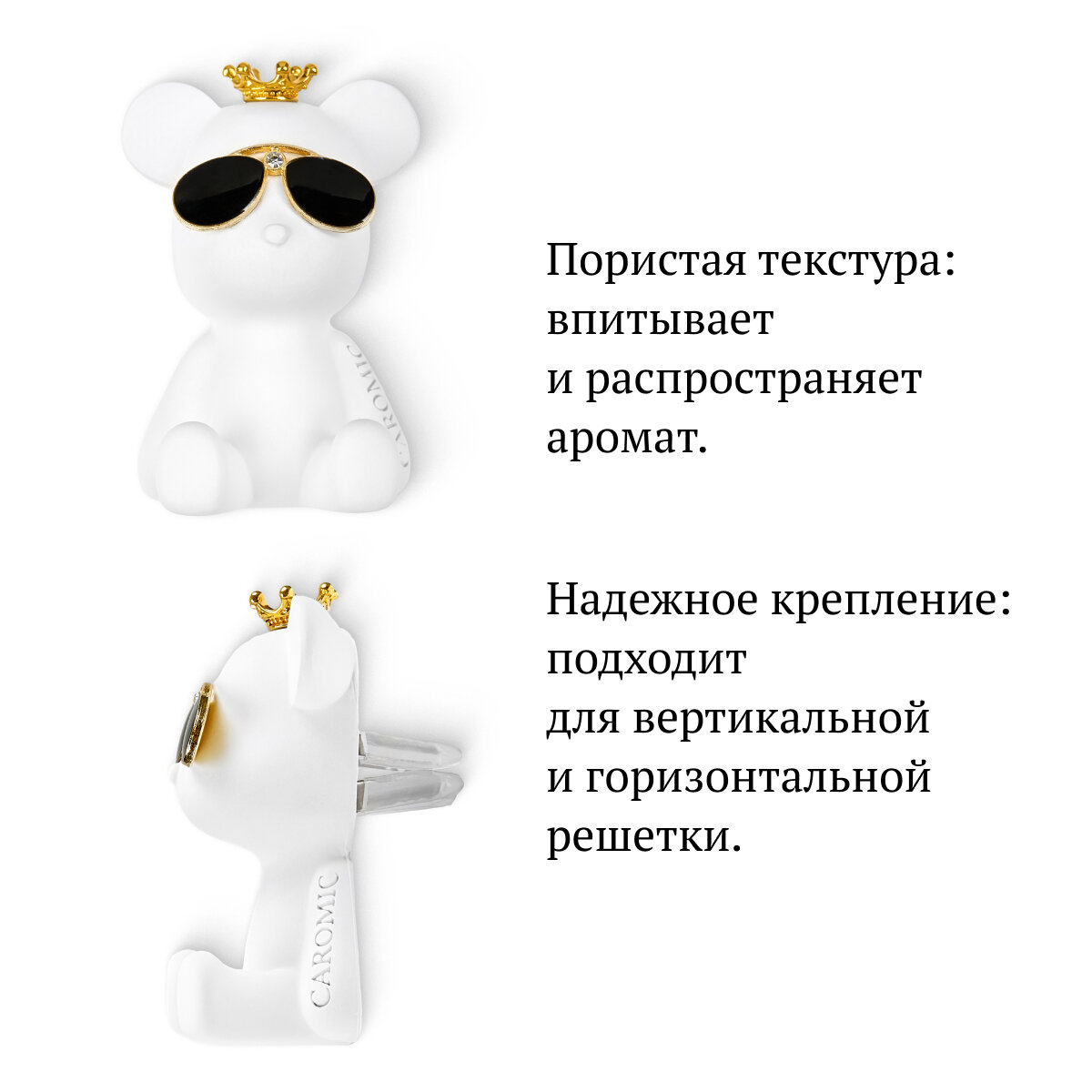 Ароматизатор для автомобиля многоразовый на дефлектор автопарфюм освежитель воздуха в машину CAROMIC мишка бандит