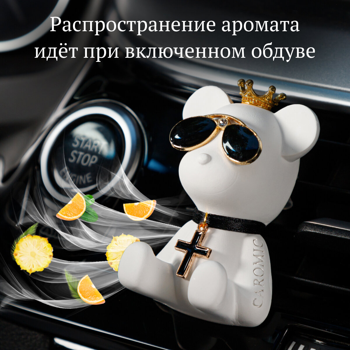 Купить Ароматизатор для автомобиля многоразовый на дефлектор автопарфюм освежитель воздуха в машину CAROMIC мишка в очках и крестике