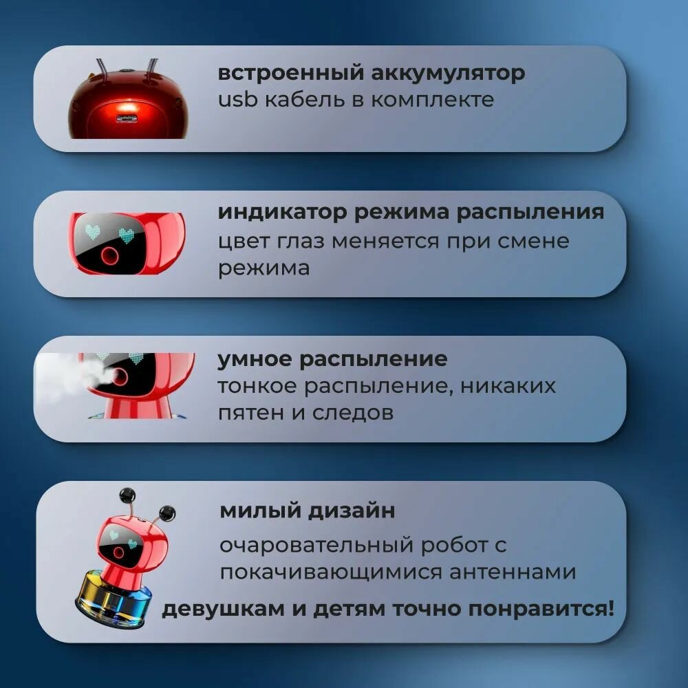 | Комплектация | автоматический ароматизатор Робот с ароматом Хилтон, кабель USB-type-c, картонная коробка |