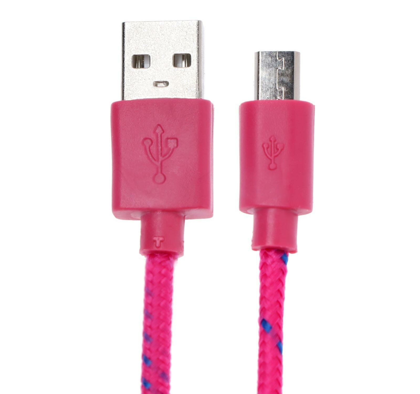 Купить Кабель OXION DCC288, microUSB - USB, зарядка + передача данных, 1 м, оплетка, розовый