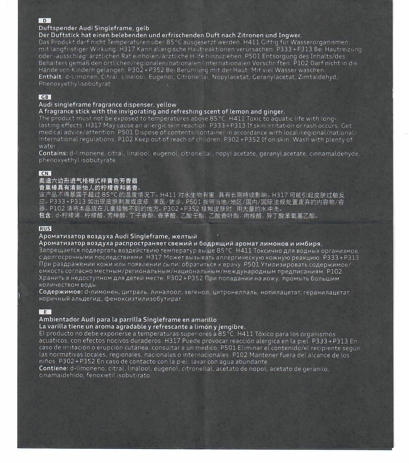 Купить Ароматизатор воздуха в салон Audi Singleframe Fragrance Dispenser Yellow 80A087009B