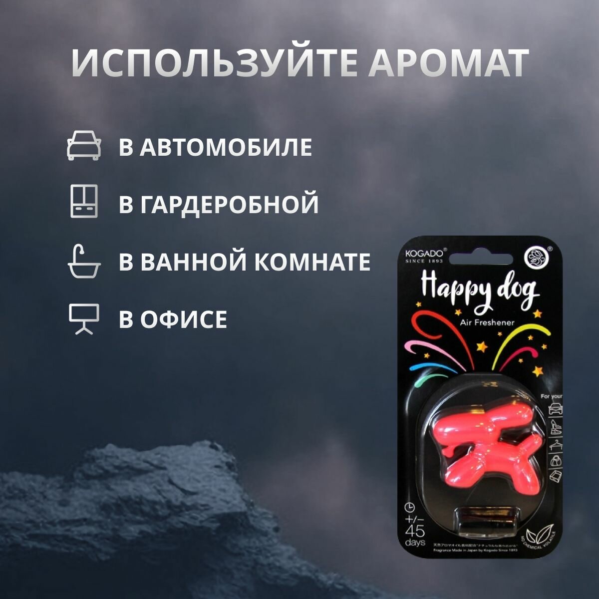 | Комплектация | Ароматизатор полимерный Kogado Happy Dog на кондиционер Lucky Fairy арт. 3303 1 шт. |