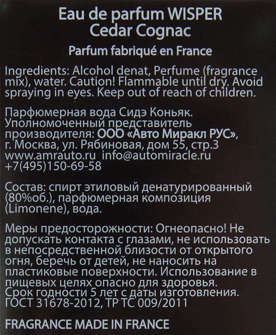 Ниже Вы можете прочитать отзывы на Ароматизатор Wisper Cedar Cognac, ознакомится с подробными характеристиками, посмотреть интересные обзоры и фотографии на Ароматизатор Wisper Cedar Cognac.