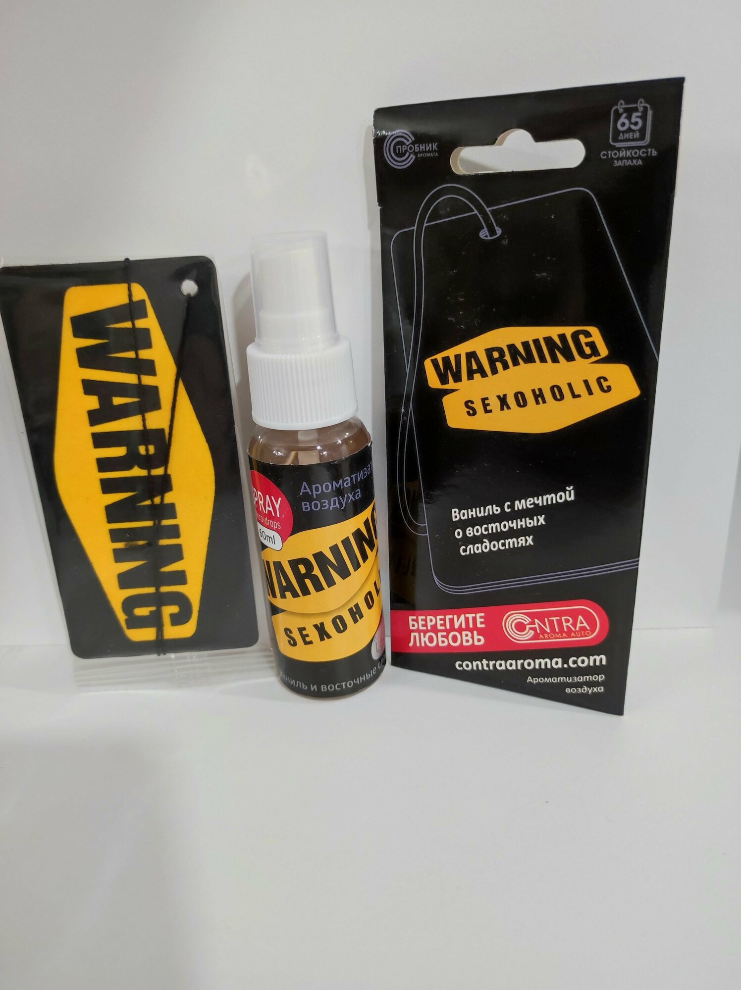 Ароматизатор Contex "Warning Sexoholic" для авто с ароматом ванили и восточных сладостей интересное: