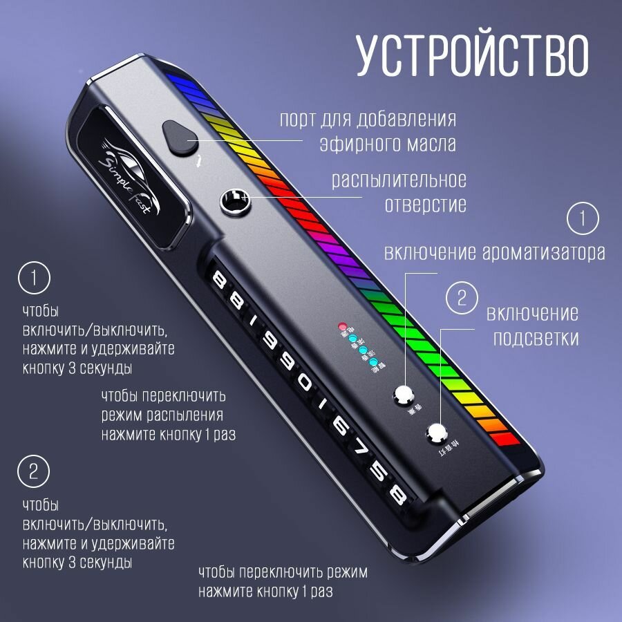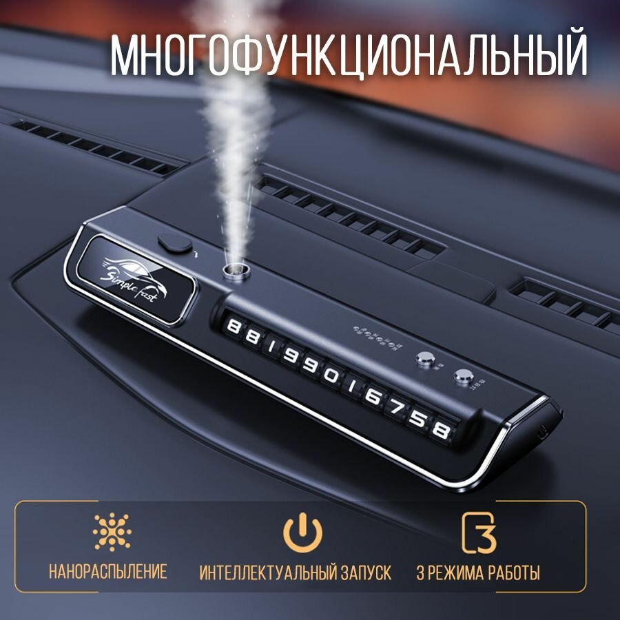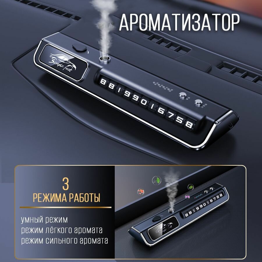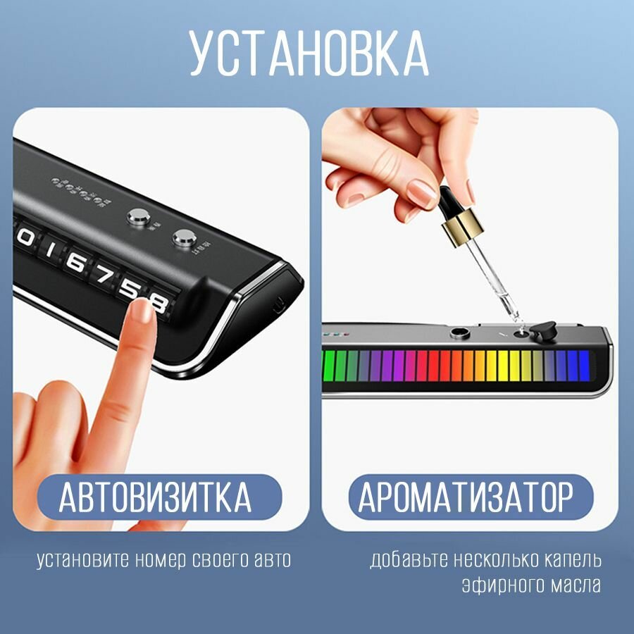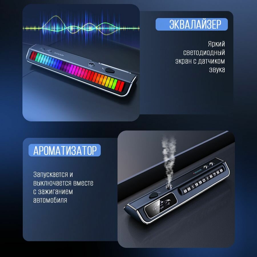 Ароматизатор в авто с музыкальным эквалайзером и автовизиткой на АКБ, черный интересное: