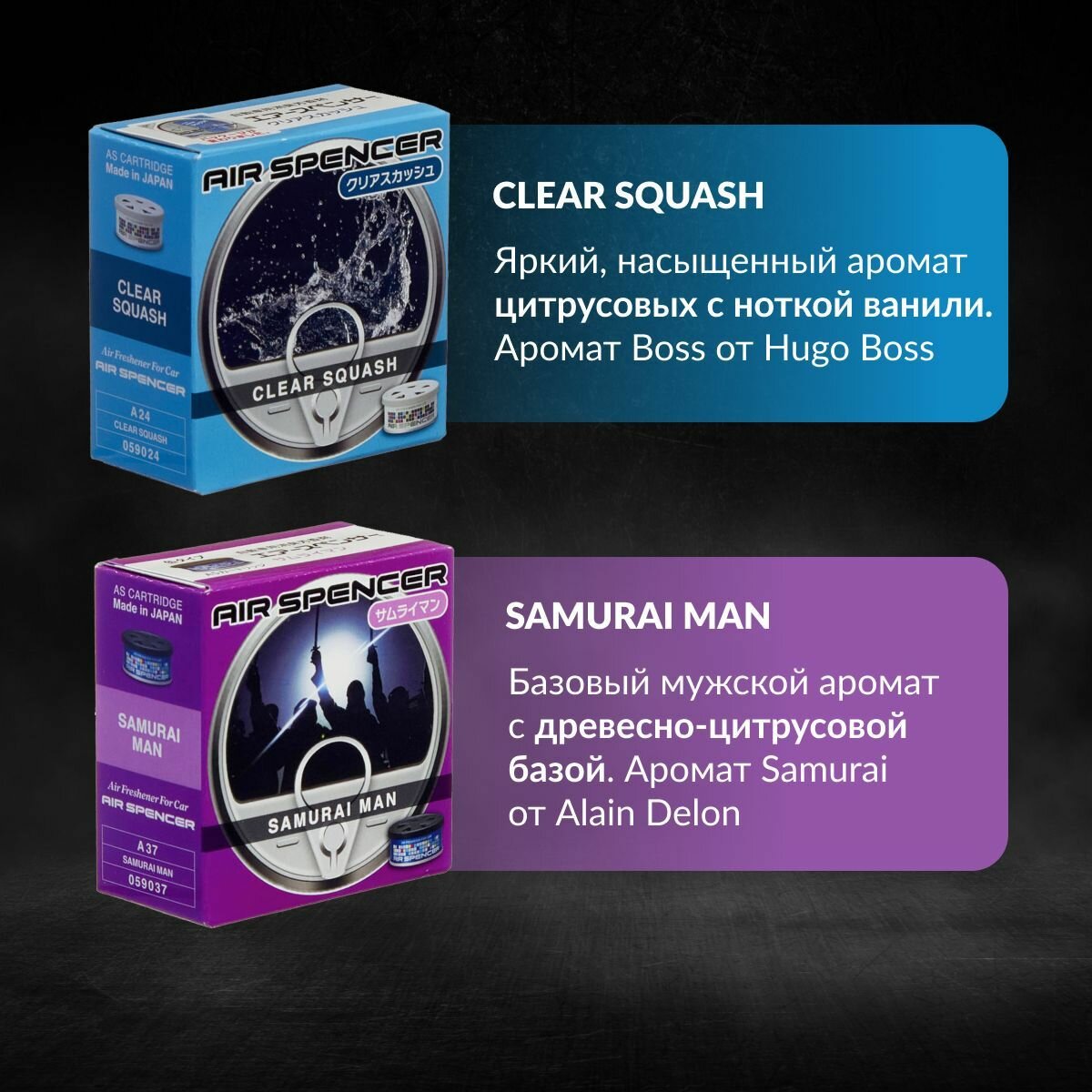 EIKOSHA Набор ароматизаторов для машины и дома Spirit Refill - SQUASH, SAMURAI MAN, CLEAR SQUASH / свежесть, самурай, кристальная свежесть, автомобильный парфюм (арт. A-9, A-37, А-24)