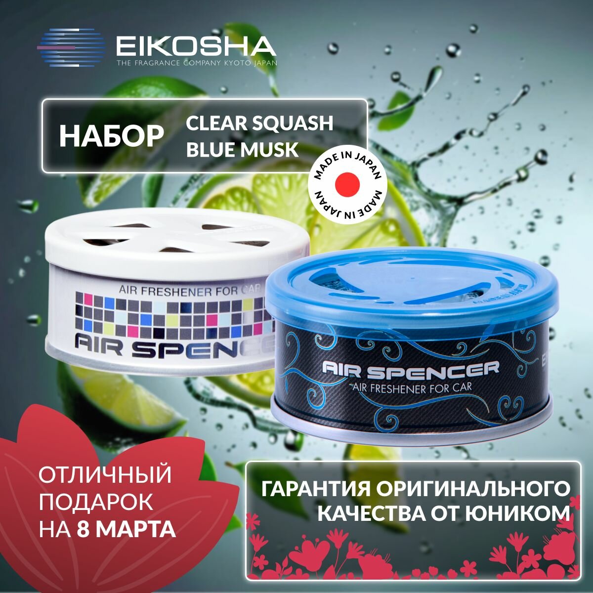 EIKOSHA Набор ароматизаторов для машины и дома - CLEAR SQUASH / кристальная свежесть, автомобильный парфюм, арт. A-24 (2 шт.)