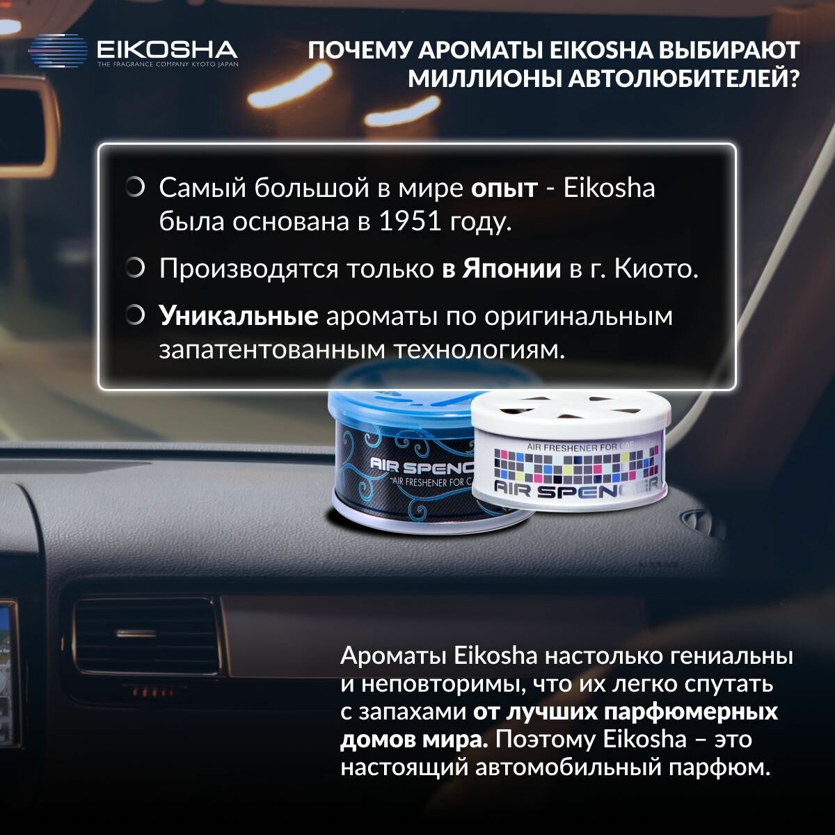 Набор ароматизаторов в машину EIKOSHA Spirit Refill A-9, A-24, A-52, меловой, Япония, оригинал, автомобильный парфюм