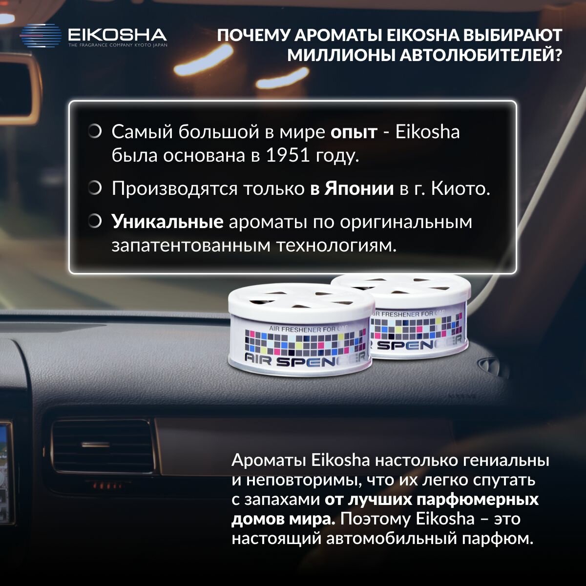 СохранитьНабор меловых ароматизаторов в машину из двух штук EIKOSHA Spirit Refill Exclusive (A-9, A-19) Япония, оригинал, автомобильный парфюм интересное: