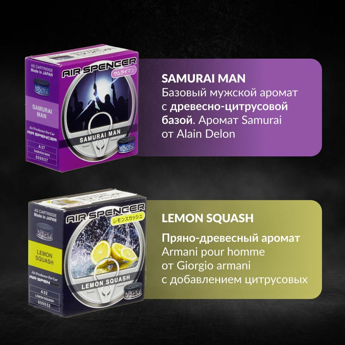 Купить EIKOSHA Набор ароматизаторов для машины и дома Spirit Refill - SAMURAI MAN, LEMON SQUASH / самурай, лимонная свежесть, автомобильный парфюм (арт. A-37, A-52)