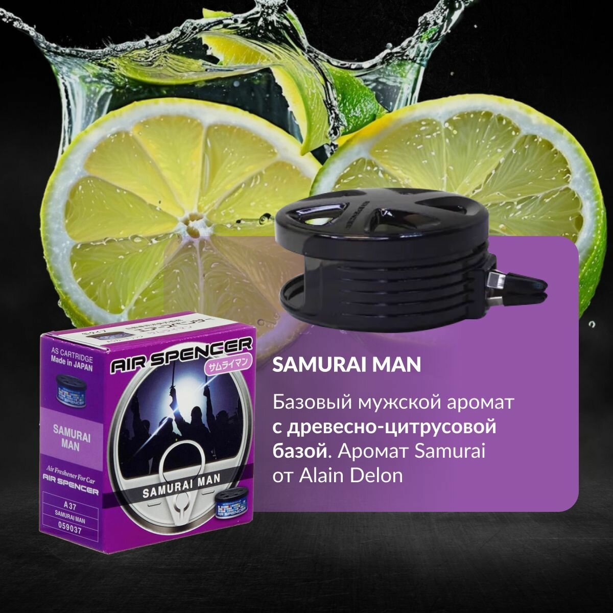 EIKOSHA Набор ароматизаторов для машины и дома Spirit Refill - SAMURAI MAN, LEMON SQUASH / самурай, лимонная свежесть, автомобильный парфюм (арт. A-37, A-52)