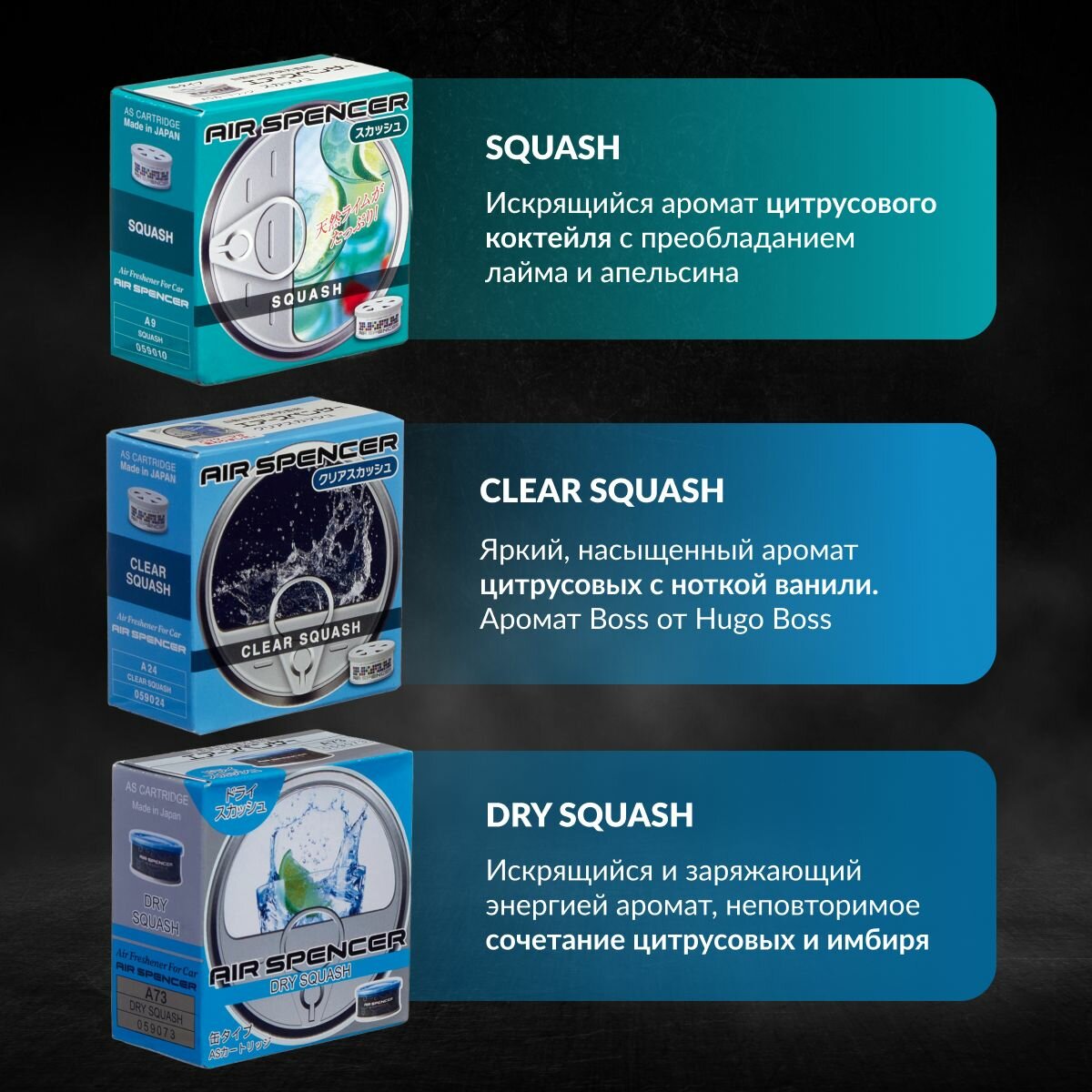 EIKOSHA Набор ароматизаторов для машины и дома Spirit Refill - SQUASH, CLEAR SQUASH / свежесть, кристальная свежесть, автомобильный парфюм (арт. A-9, A-24)