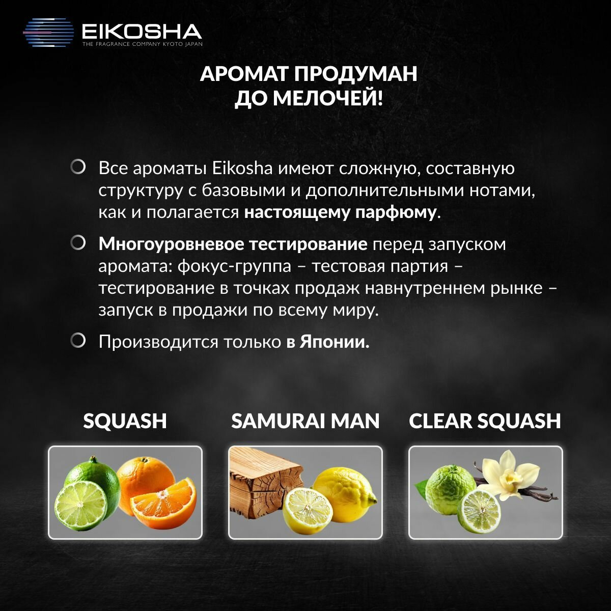 СохранитьEIKOSHA Набор ароматизаторов для машины и дома Spirit Refill - SQUASH, SAMURAI MAN, CLEAR SQUASH / свежесть, самурай, кристальная свежесть, автомобильный парфюм (арт. A-9, A-37, А-24) интересное: